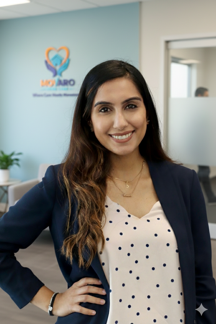 At Movaro, she oversees daily operations, caregiver coordination, and client experience initiatives, ensuring every family receives reliable, responsive, and thoughtful support. Her leadership ensures Movaro operates with both structure and heart.